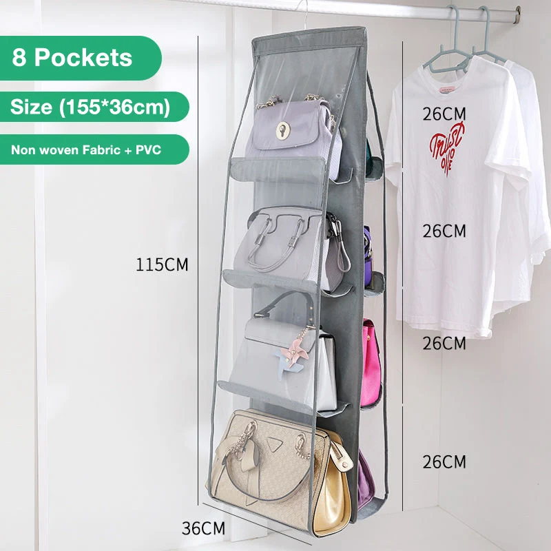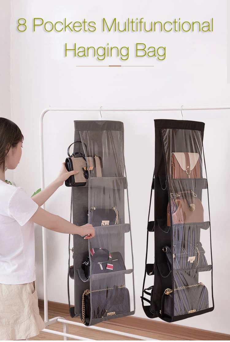 8 Pockets Hanging Handbag Storage Bag Wardrobe Transparent Storage Bag