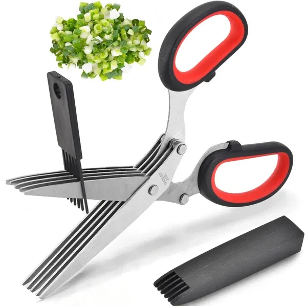 Ideal Gift: premium kitchen scissors with 5 blades and cover makes a perfect gift on Christmas, Wedding Day, Mother's Day, Housewarming or more, especially for cooks and herb lovers.