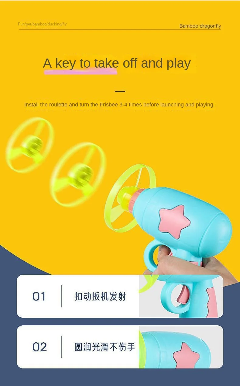 Outdoor flying bamboo dragonfly toy UFO launcher gyroscope gun with rotating toy