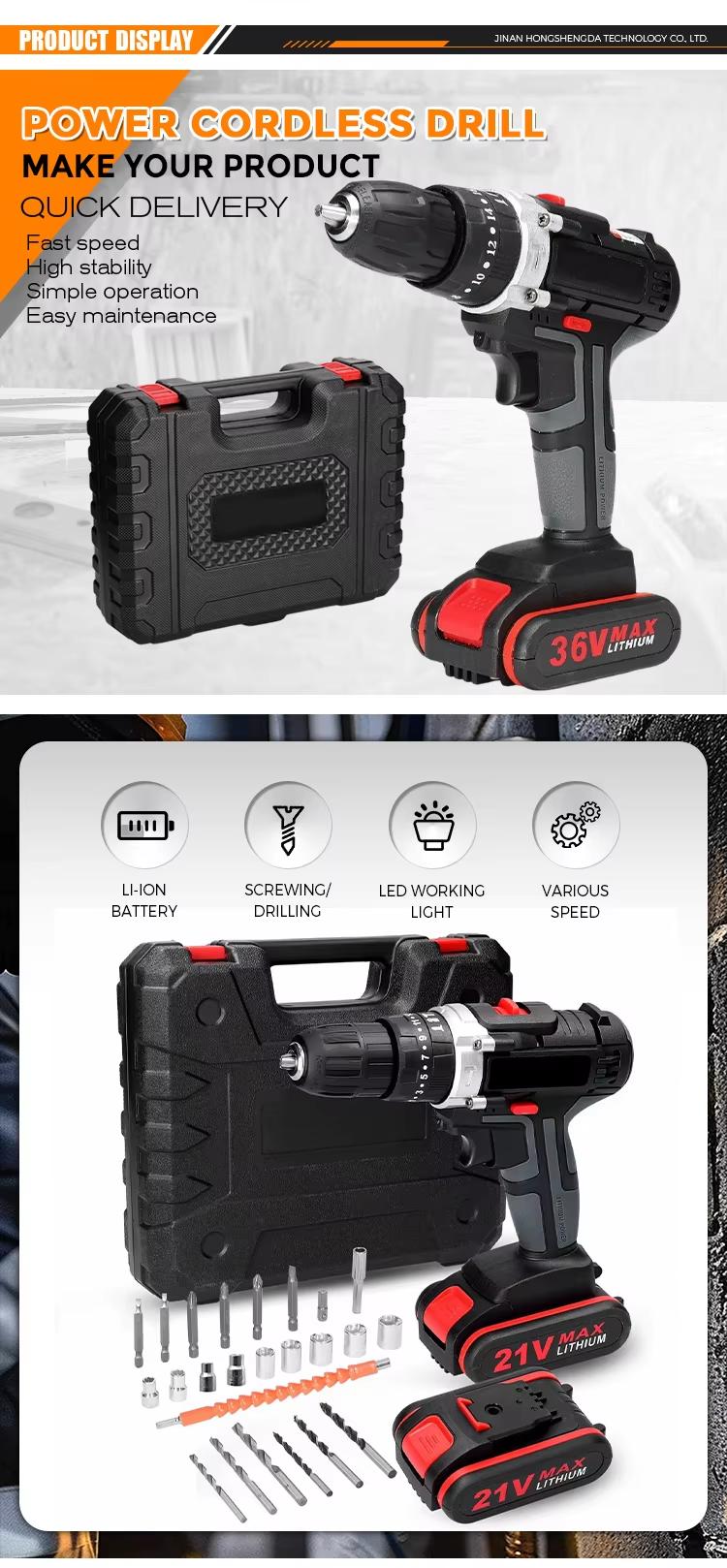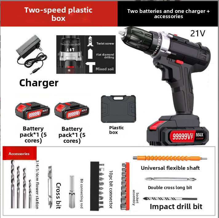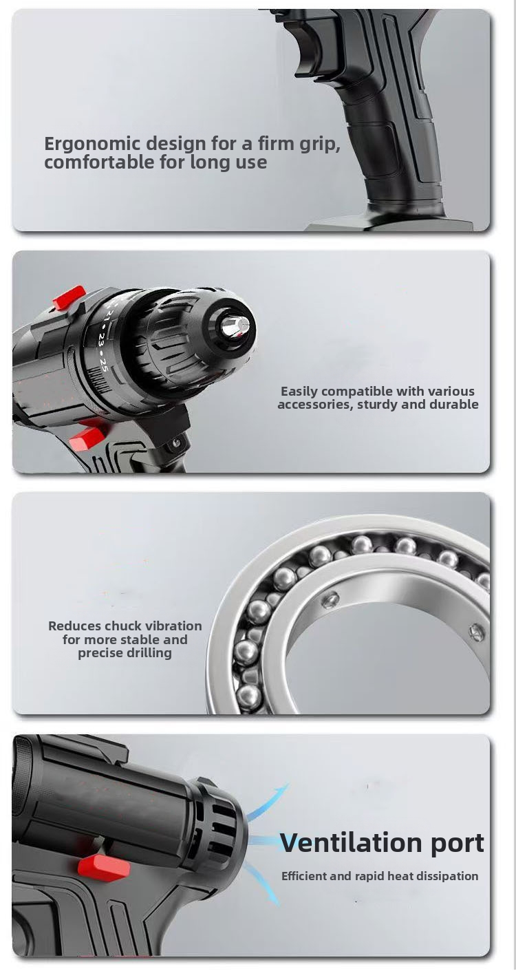 Portable Cordless Hammer Drill Kit Cordless Battery Power Impact Drill